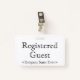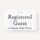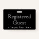 This old fashioned badge design features the message "Registered Guest", and a customisable company name or other custom message. A badge like this could perhaps be used to indicate that a person is a known and authorised guest or visitor at a business or workplace. [~Z0000307]