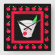 Old Fashioned Retro Drink Red Cherries on Black Square Wall Clock