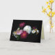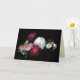 What could be lovelier than to say Happy Birthday with a bouquet of old fashioned roses? This card displays an exquisite design of red, pink and white antique roses set off by a black background.