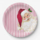 Old Fashioned Santa Claus Cranberry Stripe Paper Plate