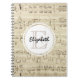 Old vintage sheet music handwritten in black ink on an antique beige parchment with notes. Memories from a time long ago, when music was handwritten in ink. A circle layered over top with your name and monogram initial inside.
