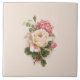 Old Fashioned White/Pink Roses-Buff Background Ceramic Tile
