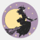 These graphic tees and other items are adorned with an image of a prim and proper looking witch flying on her broom against the moon and stars.