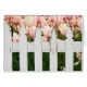 Pink Dutch tulips with white picket fence.