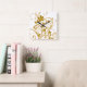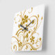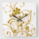 This unique and interesting clock features a pretty floral swirl design in an old antique gold colour on a white background. The image is oversized on the face of the clock, giving it an abstract retro quality. Dramatic!