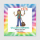Celebrate your graduation with brilliant tie dye colour featuring a hippy guy holding up two fingers in the universal symbol of peace with his tie dye headband and his trusty guitar leaning against his leg. He's holding up a sign featuring your class year. Original design by Holiday Hearts Designs for OldRockerDude.