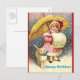 Old Holiday Image Girl, Snow ,Cat ,Yellow Umbrella Postcard