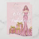 Old Hollywood Glam Woman Pink Glitter Effect Birthday Invitation with Silver Metallic Foil Accents.