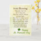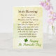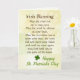 Beautiful inspirational quote customised St. Patrick's Day greeting card features an Irish Blessing, "MAY THE ROAD rise up to meet you. MAY THE WIND be always at your back. MAY THE SUN shine warm upon your face; the rains fall soft upon your fields and until we meet again, MAY GOD HOLD YOU in the palm of His hand." The inside greeting can be modified or deleted for a blank card.-