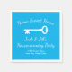Elegant housewarming party napkins for new home. Classy design with old vintage skeleton key. Great for celebrations with friends and family. Add your own personalised text to celebrate your new address. Perfect for cocktails, BBQ or dinner at the house. Custom colour paper party supplies. Blue example.