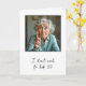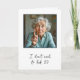 An elderly woman humorously gestures with a pointing finger for a birthday for getting older.