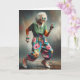 Old lady dancing and wearing floral pants and sneakers for getting older birthday.