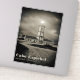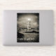 The black-and-white tones of the image intensify the mood of isolation and resilience. Heavy clouds loom overhead, suggesting the presence of strong winds and turbulent seas nearby. Yet despite the threatening atmosphere, the lighthouse remains steadfast, its bright light piercing the darkness.