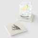 The coasters are gorgeous, a quality feel and heavy weight. They look like a precious archeological find. A rustic stone juxtaposed with a modern floral black and white print. I like the way the print goes slightly imperfect on the cut stone edges giving them a kind-of natural beauty.