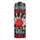 This humourous graphic features a red bowling ball and five pins, with a vintage, distressed texture. The text 'NEVER UNDERESTIMATE AN OLD MAN WITH A BOWLING BALL' is in a bold, grunge-style font, making it a witty and simple graphic for a perfect for a passionate bowler.