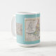 A map of old Israel from the Middle Ages is flanked by a mosaic floor from an ancient synagogue depicting the twelve tribes of Israel, and set against a soft robin's egg blue background