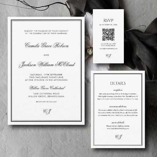 Elevate your wedding invitations with this Personalized Old Money Black and White Wedding Details QR Code Enclosure Card, designed to complement wedding invitation ideas and any timeless wedding invitation style. Perfect for wedding invitation cards and a cohesive wedding invitation suite, it pairs beautifully with vintage wedding invitations and refined wedding invitation templates. This card enhances classy wedding invitations, wedding invitations ideas, and elegant black and white wedding invitations. Its clean layout suits simple wedding invitations, elegant wedding invitations, modern wedding invitations, and minimalist wedding invitations, ideal for italian wedding, victorian wedding, and vintage italian weddings themes.