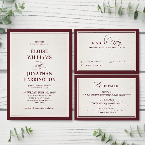 Old Money Modern Formal Burgundy Luxury Wedding Invitation Belly Band
