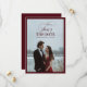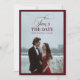 This luxury burgundy and ivory photo Save the Date card features a refined minimalist layout framed with a rich maroon border. The front showcases elegant script and classic serif typography, while the back highlights a romantic engagement photo for a timeless and personal touch.