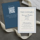 Formally invite guests to your big day with this Old Money Script Blue Stripe Wedding Details Enclosure Card! This design features script font and timeless blue stripes. Personalise your details and the custom qr code on the back on Zazzle! Have a custom request? Message me!