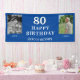 Old New Photo 80th Birthday Party Banner. 2 photos - old and new, the background is blue. Personalise the backdrop with your photos, your name, the age number.