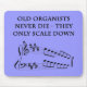 A twist on an old theme: the words say "Old organists never die - they only scale down" and the musical scale below them does just that! A cunning little pun, which is ideal for any organist who is perhaps, ahem, thumbing their nose at people who suggest they might be retiring soon!