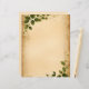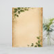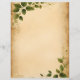 Coloured with age, worn, foxed, and smudged, with green leaves trailing over it, this paper is perfect for casual correspondence. The back is the same aged parchment colour as the front, left plain, with no leaves or grunge.