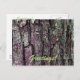 Wood for wood's sake! Close up photo of bark on old pine tree, from Norwegian woods. Grey colour scheme with a touch of purple added. Text "Greetings!" is printed in green on front as well as on page 2. Text can easily be customised.