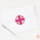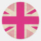 An illustration of an old round Union Jack Flag in shades of pink and cream
