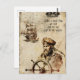 Cool postcard for the Pirates lovers featuring Pirates of the Caribbean captain with ship wheel, pirate flag and pirate ship on old map with slogan "Under a black flag we sail and the sea shall be our empire".