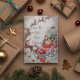 Old Red Vintage Santa Claus Flying Reindeer Sleigh Card