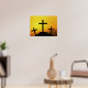 Old Rugged Wooden Cross on Calvary Hill at Sunset Poster