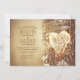 Old vintage background rustic engagement party invitation with tree trunk and carved love heart with your initials. Perfect invitation for rustic country celebration, or vintage inspired engagement party with tree motif.