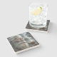 The coasters are gorgeous, a quality feel and heavy weight. They look like a precious archeological find. A rustic stone juxtaposed with a modern floral black and white print. I like the way the print goes slightly imperfect on the cut stone edges giving them a kind-of natural beauty.