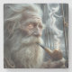 An old seaman with a long white beard and deep wrinkles gazes up at a woman's shape dancing from his smoking pipe