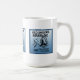 A graphic illustration of a sailboat, a dinghy, and sailor on a mug by artist/designer Charmaine Paulson. The text reads “Old sailors never die-they just get a little dinghy". ©2013charmainepaulson