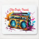 The Beat Drops Here. Experience the energy of sound captured in a burst of colour. This graphic takes the iconic ghetto blaster and transforms it into an explosion of audio-visual artistry. The warm yellow and cool blue tones clash beautifully against the wild, painterly splatters, making it feel like the music is literally escaping the machine. Get loud, stay colourful.