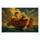 An old sailor and his trusty canine companion sailing choppy waters on their motor boat, this painting is fun colourful and exudes a feeling of movement and adventure