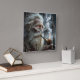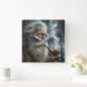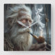 An old sailor with a long white beard and deep wrinkles gazes up at a woman's shape dancing from his smoking pipe
