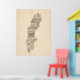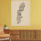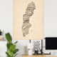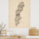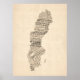 A map of Sweden made from a collage of old and vintage sheet music on an antique style background.