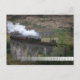 Photo postcard of an old steam train on high Glenfinnan Viaduct in western Scotland with a fading white bar and the text 'Scotland'.