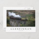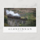 Photo postcard of an old steam train on high Glenfinnan Viaduct in western Scotland with a white box and the text 'Glenfinnan, Scotland'.