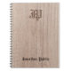 Old Style Calligraphed Monogram Template Wood Plank Board Look Vintage Text Spiral Notebook.