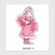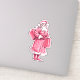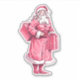 old style santa clause in pink, carrying a couple presents