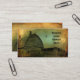 Old barn in vintage rustic colours and a lone bird flying overhead.