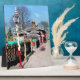 A fun photographic design of a quaint old British train station from the days of steam trains, given an unusual look by some digital effects.