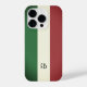 Old vintage Italian flag of Italy custom monogram iPhone 14 Pro Case. Personalised phone cover with tricolore stripes. Retro style stripe design.