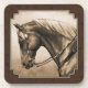 Beautifully painted portrait of a golden sorrel quarter horse with flaxen mane sporting a fancy western pleasure show bridle and saddle. Realistic artwork created from an original oil painting by equine and wildlife artist Crista S. Forest, then digitally edited to give it an aged or old photo effect in warm sepia tones, just right for decorating your rustic or ranch style country home. Accented with a matching brown background.