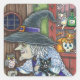 OLD WITCH HAPPY HOME, LOTS OF CATS & OWL HALLOWEEN SQUARE STICKER