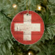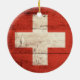 Old Wooden Swiss Flag Ceramic Tree Decoration